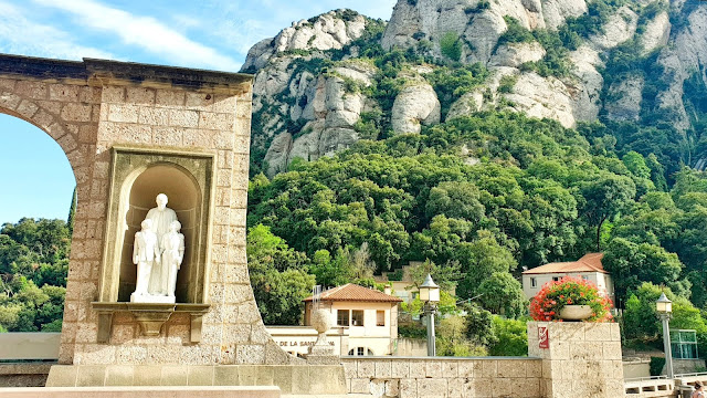 Statues in alcoves found in front of the basilica overlooking the gorgeous views of Montserrat.